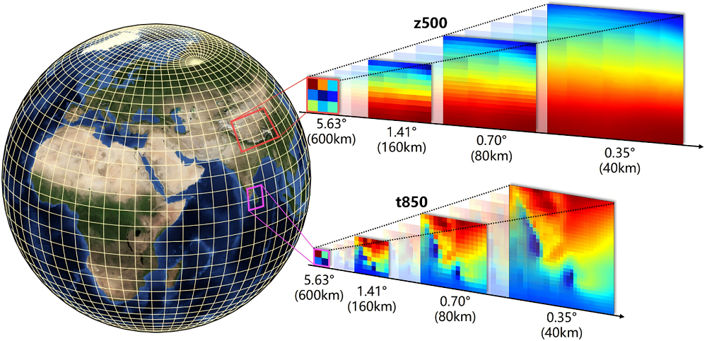 在全球气候变化研究中,将低分辨率的大尺度气候模式数据(如CMIP6)转化为高分辨率区域数据,是准确评估极端天气与区域微气候的关键。然而,现有主流国际工具普遍受限于“固定尺度”约束。研究团队提出全新范式MINet,通过多尺度隐式特征构建与基于坐标的混合专家解码器,实现了仅需一次固定尺度训练,即可完成任意尺度气象数据的超分辨率重建。